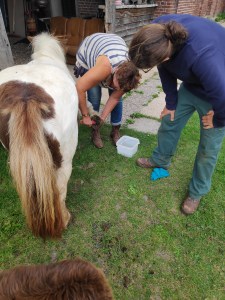 At 16hr, we cleaned the ponies’ feet while Moya watched.