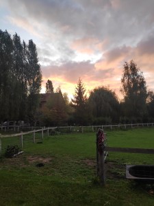 Alors, je ne faisais du velo pas des longtemps parce que la météo était changée. Je pense que le mieux météo est fini maintenant. Alors, je suis retourné a 17hr, Matthias et moi faisait du velo a les mouttons dans l’orcharde, donc we could move their enclosure forwards so they could graze fresh gass. Pendant, on le faisait, j’ai presque tombée parce que j’ai steppe sur les pommes. Matthais a dit est qu’il ya une expression en Français : tombée sur les pommes (or to faint or swoon) mais j’ai vraiment tombée sur les pommes. Alors, pendant on le faisait, il commence pluie. Donc, on est retourne la ferme ou j’ai continué mets le boire qu’était sèche sur la terre dans ‘interieur. Aussi, on a donner l’eau a les vaches. A 19hr, le travailler par le jour a fini.