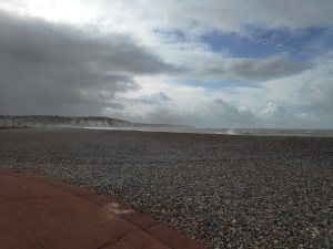 Anyway, our work finished at 12 and at 12.30, we had lunch. Elisabeth told me that at 14hr30, she was going to run errands in Diueppe and suggested that I come with her so I could buy my train tickets for Paris. We arrived at the station at 15hr and bought the tickets. I tried my best to order them in French, but my listening and confidence let me down. Thankfully Elisabeth was there to help and the seller was very nice (and he spoke English.) My initial asking of the tickets went well, but then the seller started talking about the train timetable and I was lost. I gave up talking in French and reverted to English. Although I recovered a little at the end when we were discussing the return journey.