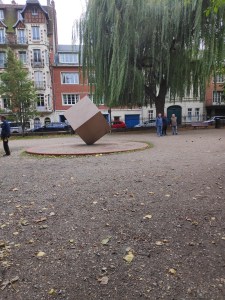 Je restais la jusqu’un 16hr ou j’ai parti pour mon rendeyvous avec Elisabeth. Le rendeyvous était a cet jardin de memorial guerre mondial 2. Il y a avait cette bizarre sculpture et beaucoup hommes jouer petanque. Le Français jouent petanque. Ils le jouent partout.