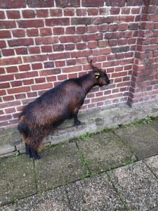 Alors, aujourd’hui était samedi donc il y a peu travaillé. Apres mon petit dejeuner quand je suis retourne du ma roulette, j’ai vu la chèvre comme ca. Je n’en suis rien pourquoi. Mais a 9hr, j’ai donner un manger les lapins et a 10hr, j’ai continué laver les bouteilles. Quand j’ai marché a la gare du laver, le chevre était encore comme ca. Bizarres animaux.