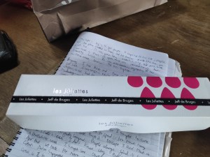 Tomorrow, it’s Elisabeth’s birthday, so I bought her some chocolates. Initially, I didn’t want to spend too much money, but I decided “I don’t care. Fuck it.” Except, I said that in French and everybody laughed. People always find it funny when I swear in French. I don’t know why. But we tracked down a chocolatier where I bought some choccies for 12 euros.