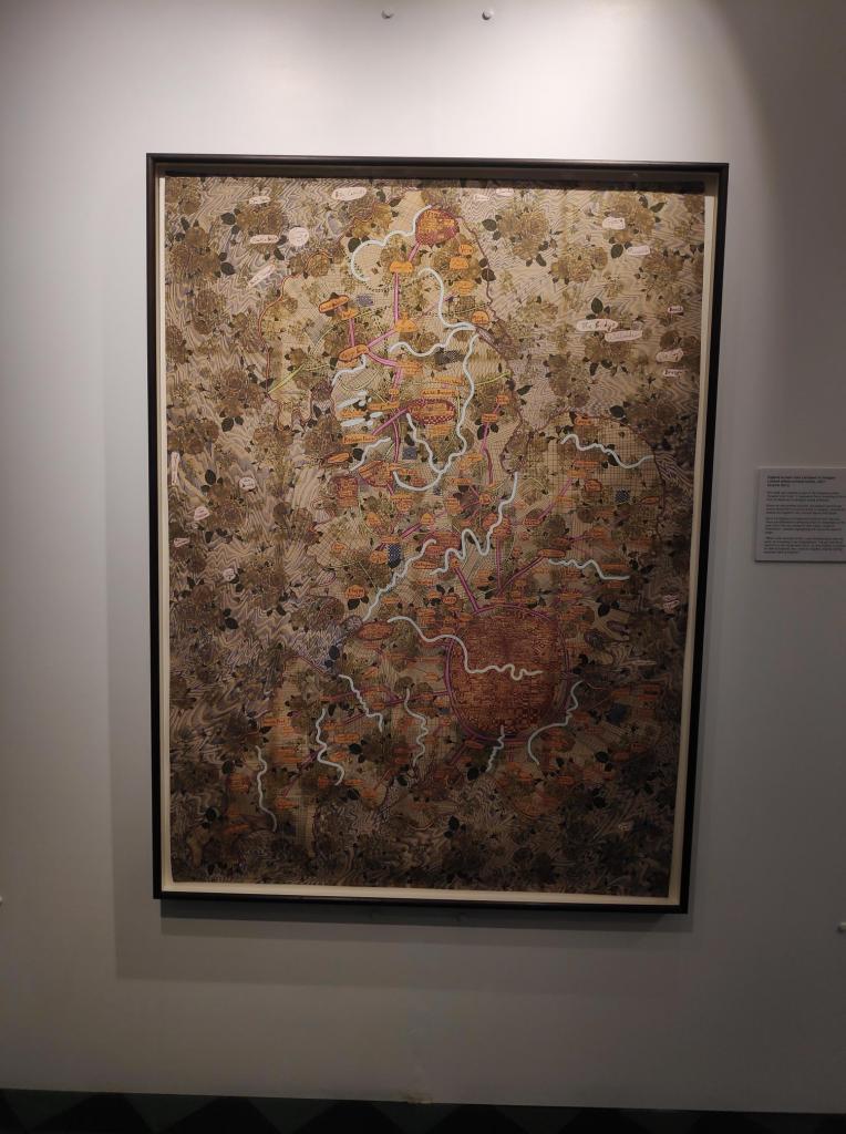 This was a tapestry that Grayson Perry completed in lockdown. It was a map of the UK from his mind’s eye. It began in his home in Islington, London and then spread outwards to the rest of the country.