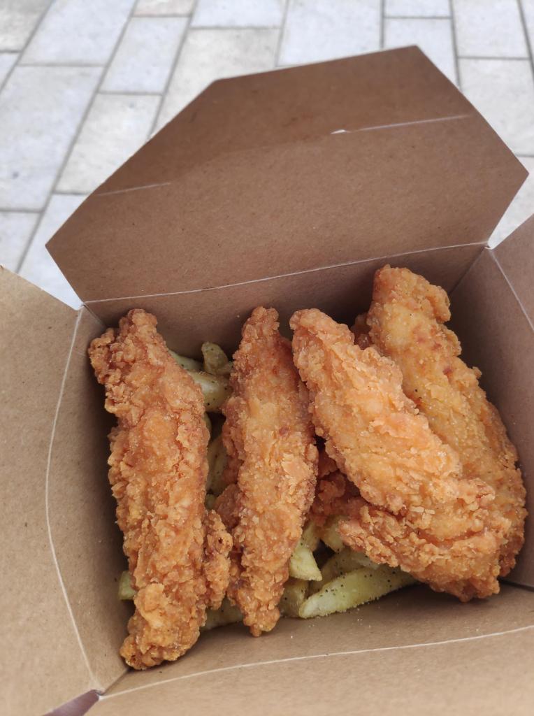 And at five I headed there. I got some pre-cooked chicken strips and chips served out of gastro-trays for only a fiver. It was a little dry, but the chips were well-seasoned. In London, it doesn’t seem like anybody seasons their chips anymore. But next time I’m in Yorkshire, I definitely have to get the giant Yorkshire pudding.