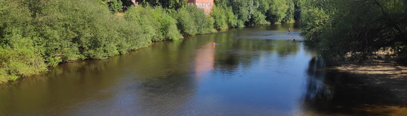 Back to the river I went, crossing the Victoria bridge to the siren’s call of an ice cream van. However, when I saw the ice creams were £4.50, I put wax in my ears and headed down to the river. I can see where Hereford gets its name from. The water was so shallow you could wade to the middle of the river. People were. They were also canoeing and stand-up paddle boarding.