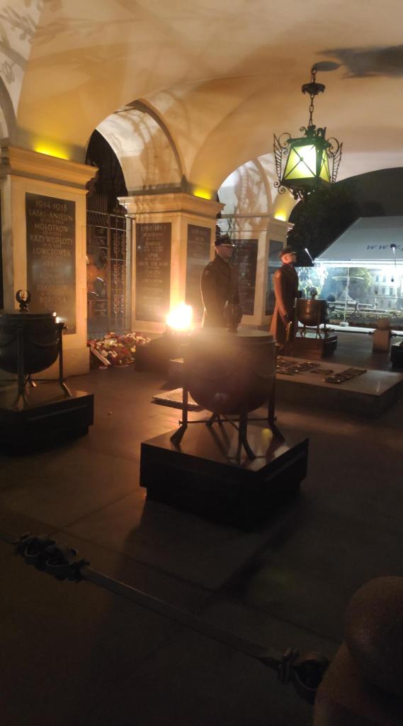 The tour guide did point out that the Polish population is decreasing due to so many Poles going abroad. I wonder why they would be doing that….Anyway, a nice perk of the tour was that they bought us all a free drink from Caffe Nero. Considering how cold it was, this was much appreciated. At seven, our tour finished with a witnessing of the Warsaw version of the Changing of the Guard – the two guards standing over the tomb of the Unknown Soldier were relieved by two others. And unlike in London, there aren’t masses of crowds, so you can actually see something.