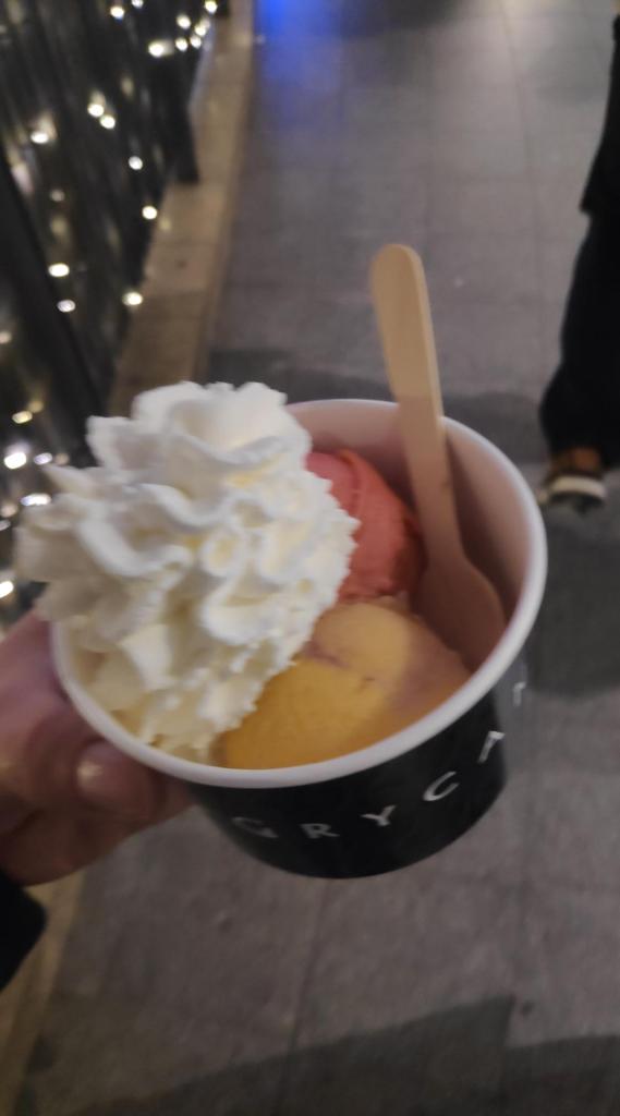 It was a mixture of meat, dumplings, salad and even some lasagne. Good, but heavy, probably due to all the protein. Afterwards, Lydia brought us some ice cream.