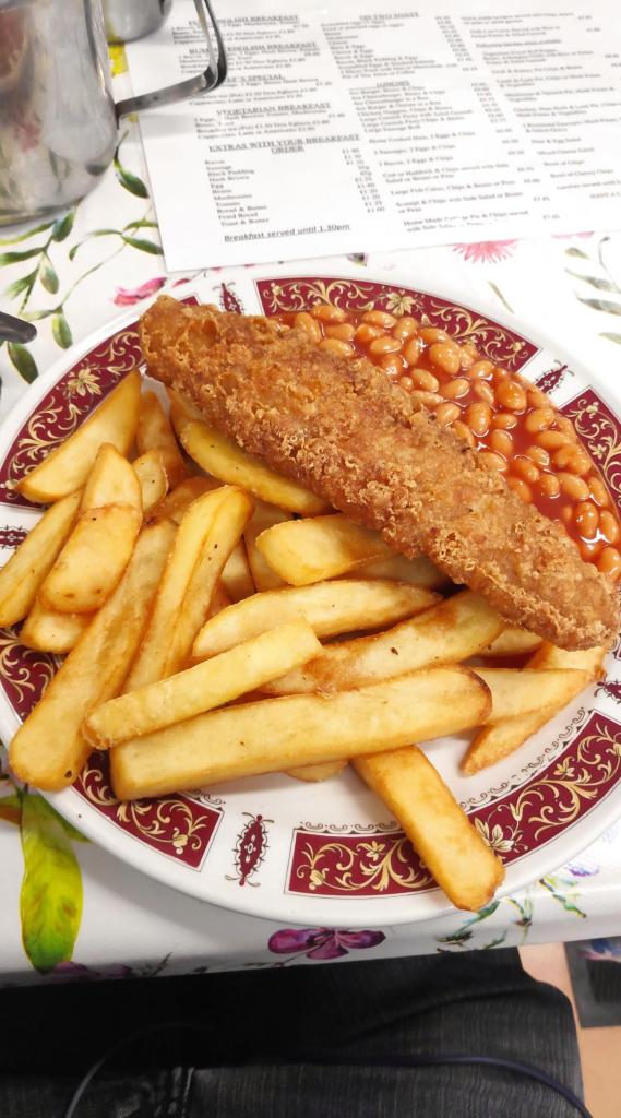 After finishing in the cathedral, I returned to the Slipway for lunch. Perhaps I should have hunted around more, but my stomach was sounding like a dying whale at this point. Plus, the cafe was cheap. My lunch – cop, chips and beans, plus a cup of tea was £9.75. In London, the price would be double that.