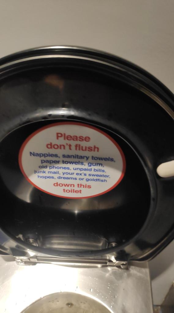 My journey to Portsmouth began at Waterloo station where I took the 10.30 South-Western train to Portsmouth Harbour. It was an uneventful journey except for this funny sign in the train toilet.