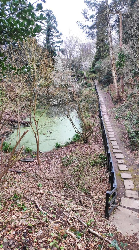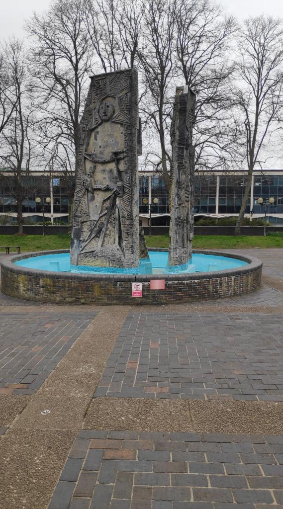 However, I had also seen a sign for a priory park, so this was where I headed next. After walking through the civic centre seeing oddities like these totem poles. I found the old Parish Church. I had a lovely time walking around it. It was quiet, cute with a little book shop and cafe. Just kidding. The church was closed too.