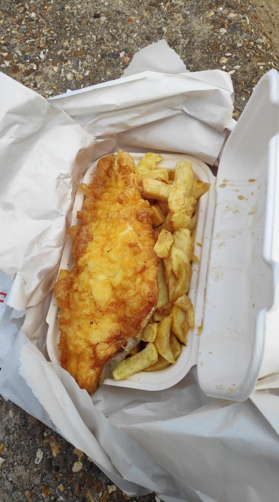 Being at a loss of what to do next, I decided it was time for lunch. Having been sorely disappointed by the frozen and overcooked fish and chips I had in Portsmouth, I was determined to get proper fish and chips. The chippies at the seafront were too expensive, so I returned to Van Looy’s where I bought a cod, chips and a coke for £8.45. And it was freshly made in front of me. By 1.30 I was back at the seafront tucking into a hefty portion of fish and chips. It was filling and greasy with salty, vinegary chips. The way that it should be. Granted it wasn’t as cheap as the fish and chips I had in Lichfield, but it was still very satisfying.