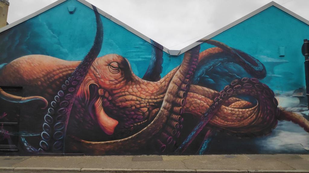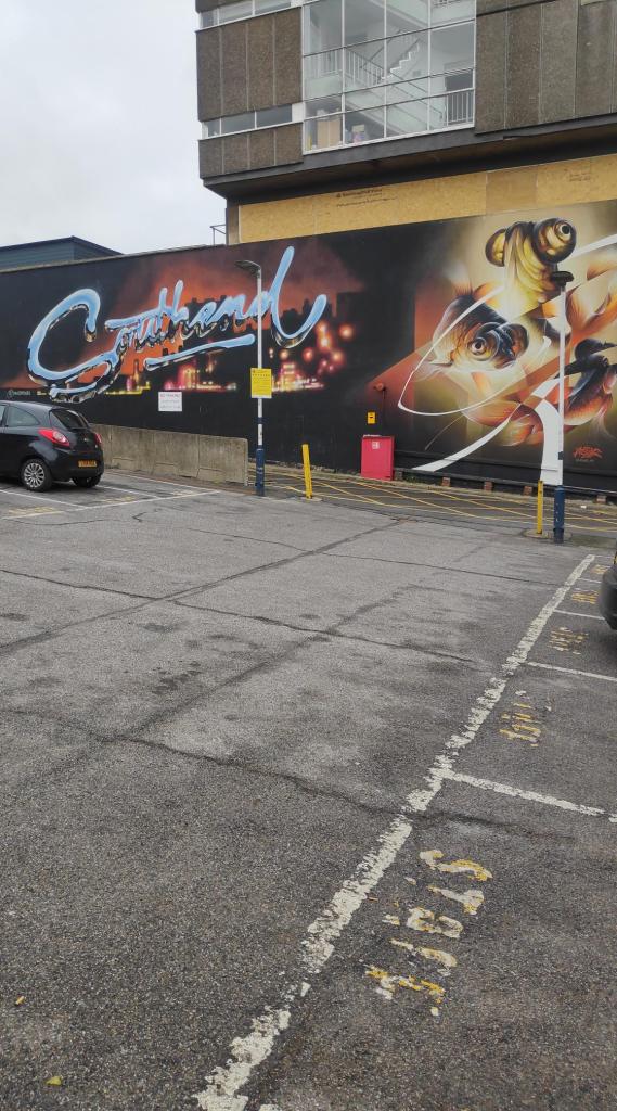Anyway, I arrived in Southend at midday where I had to navigate a veritable labyrinth to use the station’s toilets. It was like being in a bloody Wetherspoons. Upon exiting the station, I saw some awesome street art and a restaurant called Van Looy’s which sold take-away fish and chips for £6.95 and a Wetherspoon’s pub called the Last Post.