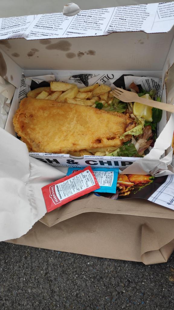 Seeing as it was nearing 1pm, I decided to get some lunch. As I was by the coast, I had to get fish and chips. Luckily, Sib’s fish and chips in the city centre sold £6.45 fish and chips for lunch. They also sold a battered deep-fried Mars Bars.