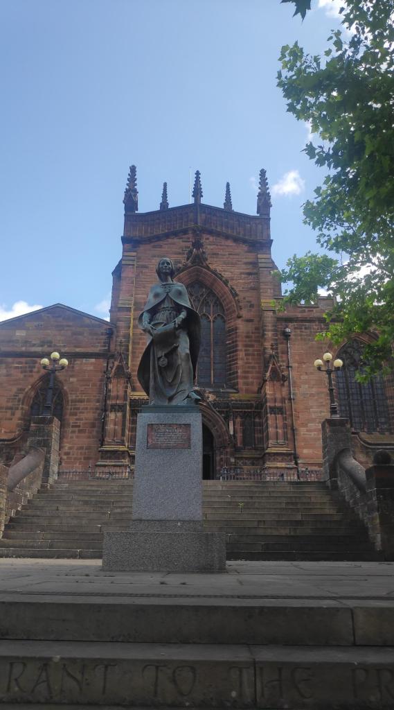 Anyway, at 1,10, I arrived at St Peter’s Church. A statue of Lady Wulfrun herself stood outside the church.