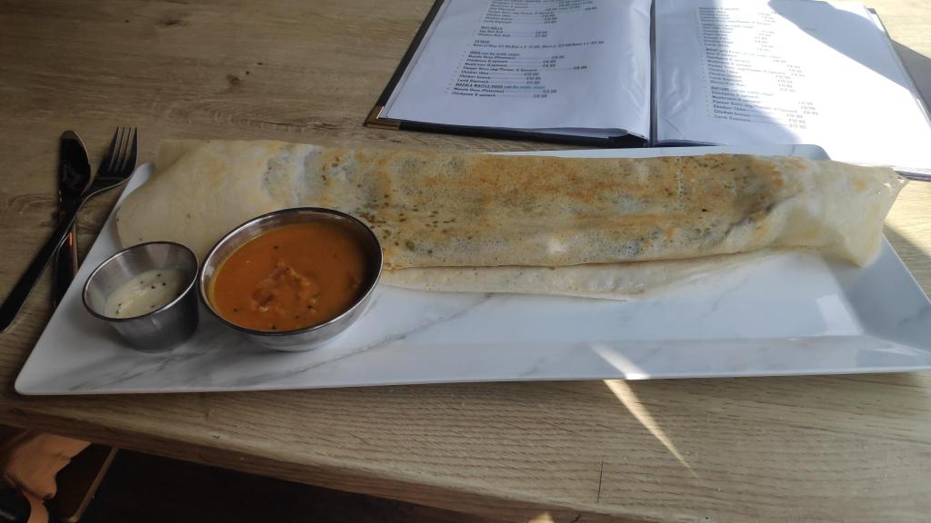 By now it was approaching 4pm and the streets were quickly entering. I somehow found myself back at the dhosa restaurant from earlier. I bought a chickpea and spinach dhosa for £9.