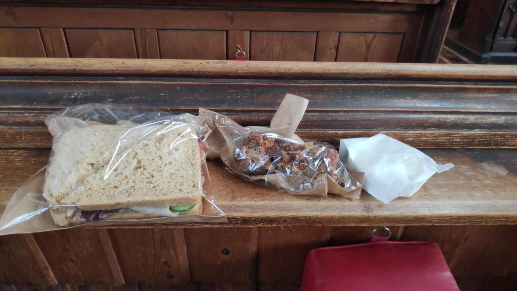 I returned to the city centre where my mind turned to dinner. I did a TGTG bag with the deli I bought lunch from. I was rather hoping for a big bag of pasties. Instead I got six cannoli and a loaf of fig bread. Don’t get me wrong, I love cannoli, but they’re not really suitable for dinner. I did another TGTG bag with a bakery-cum-greasy spoon and this has to be one of the best TGTG bags I’ve ever received – I got 4 bread rolls, 2 sausage rolls, a Cornish pasty, a loaf of bread and an iced finger. Way too much for just one person.